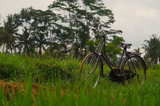I am sure many of you, who just experienced snow in the States in the middle of April, will feel no sympathy for me and my plight, as I am forced to take in the view over the rice fields here in Bali. Nor am I expecting sympathy. After all, yesterday was a lovely day in Bali. I never left the house. Practiced no yoga. I watched our gardner, Pak Mejo, build a new scarecrow for the rice paddies, to scare away the birds. I planned some travel. And here in lies the rub.